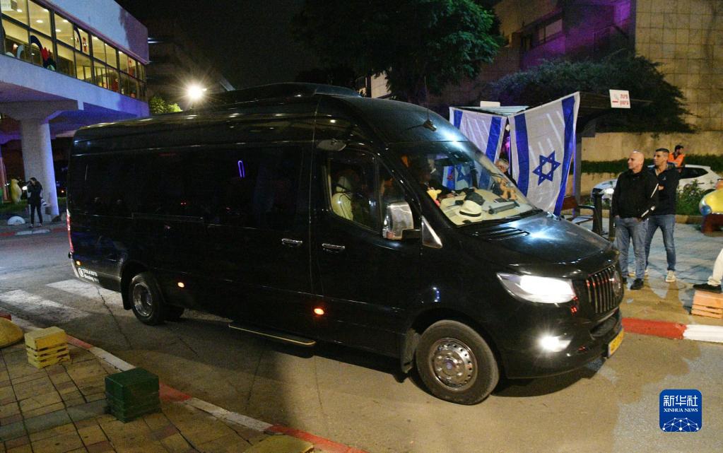 11月26日,載有哈馬斯釋放的第二批被扣押人員的車(chē)輛抵達以色列拉馬特甘的一所醫院。