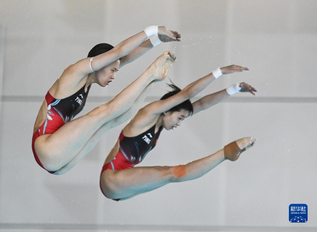 當日,在武漢體育中心舉行的2023年全國跳水錦標賽暨巴黎奧運會(huì )、多哈世錦賽選拔賽女子雙人10米跳臺決賽中,全紅嬋(廣東海印隊)/陳芋汐(上海隊)以354.66分的成績(jì)獲得冠軍。