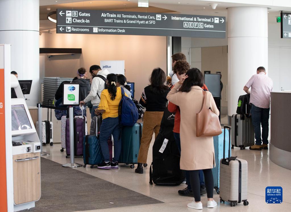 11月26日,旅客在美國加州舊金山國際機場(chǎng)準備出行。