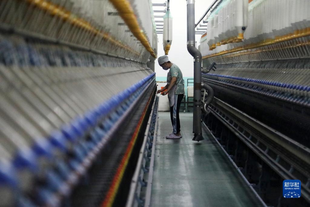 11月26日,在涇川縣一家棉紗生產(chǎn)企業(yè),工人在棉紗生產(chǎn)線(xiàn)上作業(yè)。