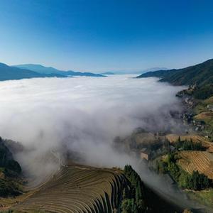 11月27日在廣西桂林市龍勝各族自治縣龍脊梯田拍攝的云海美景(無(wú)人機照片)。