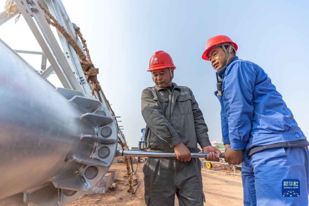11月28日,在位于重慶市銅梁區少云鎮的銅梁1000千伏變電站施工現場(chǎng),國網(wǎng)重慶送變電公司施工人員在吊裝前對構架梁進(jìn)行檢查。