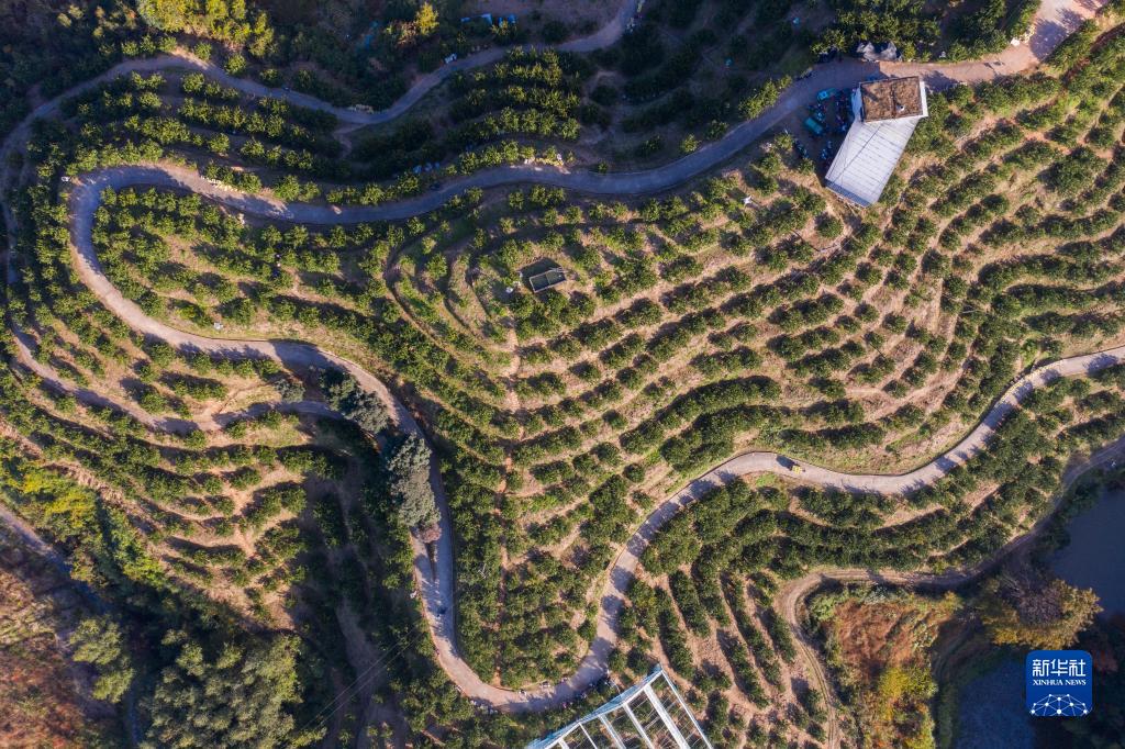 空中俯瞰浙江省麗水市慶元縣黃壇村的甜桔柚基地(11月28日攝,無(wú)人機照片)。