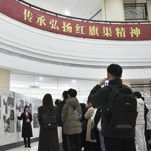 11月28日,河南農業(yè)大學(xué)的學(xué)生在參觀(guān)紅旗渠精神主題展覽。