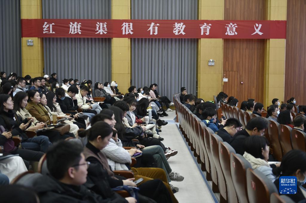 11月28日在河南農業(yè)大學(xué)拍攝的紅旗渠精神主題宣講活動(dòng)現場(chǎng)。