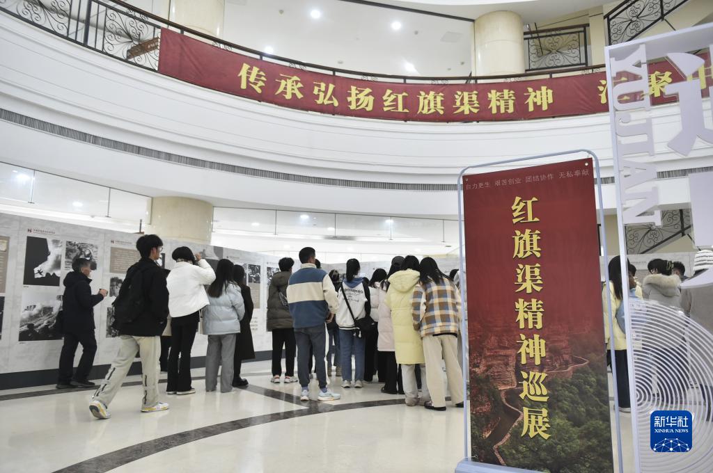 11月28日,河南農業(yè)大學(xué)的學(xué)生在參觀(guān)紅旗渠精神主題展覽。