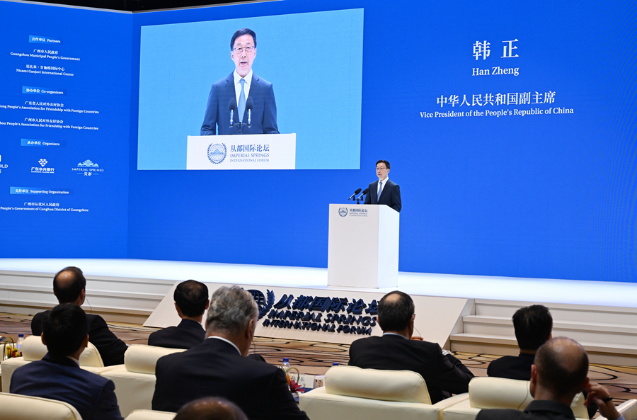 12月4日,國家副主席韓正在廣州出席“2023從都國際論壇”開(kāi)幕式并致辭。論壇首先宣讀了習近平主席賀信。