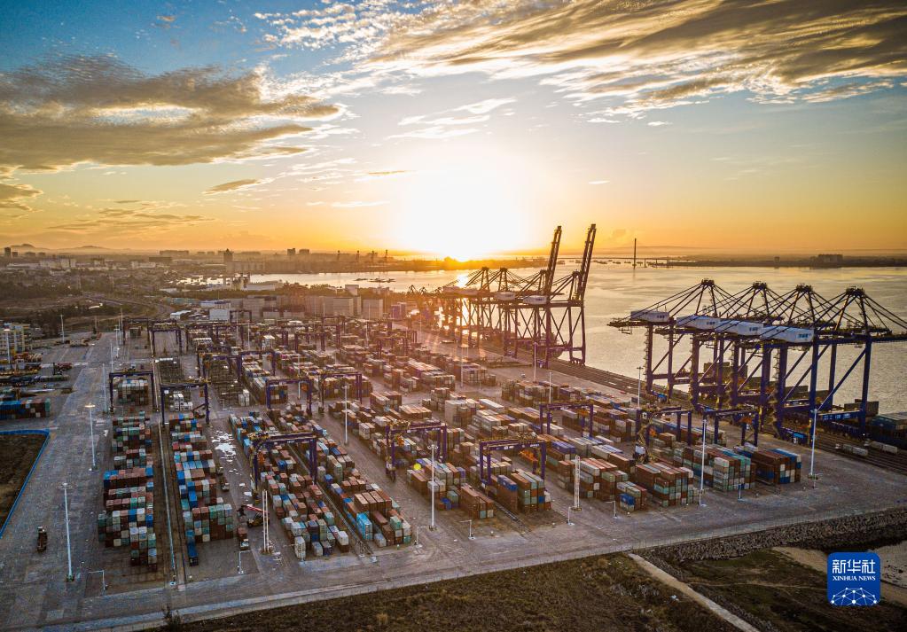這是5月26日在海南洋浦經(jīng)濟開(kāi)發(fā)區拍攝的洋浦國際集裝箱碼頭(無(wú)人機照片)。新華社記者 蒲曉旭 攝