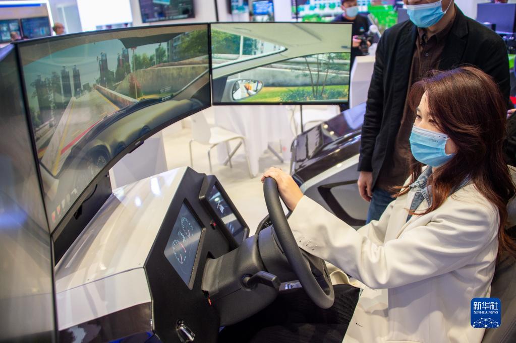11月19日至21日,2021中國5G+工業(yè)互聯(lián)網(wǎng)大會(huì )在位于武漢的中國光谷科技會(huì )展中心舉行。這是 11月19日,參觀(guān)者在“5G+工業(yè)互聯(lián)網(wǎng)成果展”上體驗駕駛智能模擬器。新華社發(fā)(伍志尊 攝)
