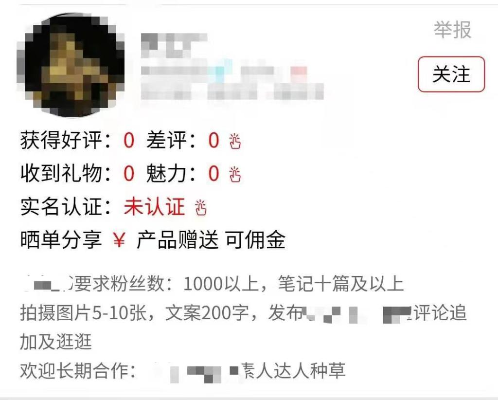 某品牌方有償招募“網(wǎng)紅”撰寫(xiě)虛假“種草筆記”