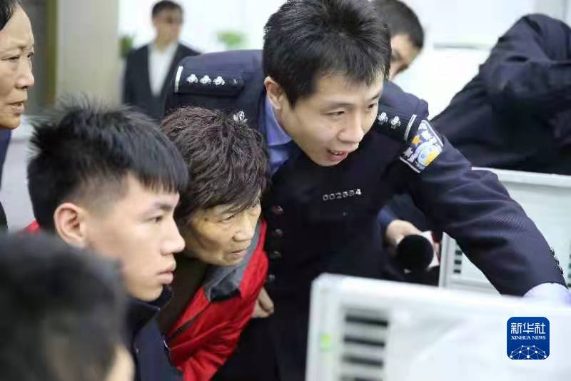 民警楊仁德在福州車(chē)站協(xié)助旅客出行(1月8日攝)。新華社發(fā)