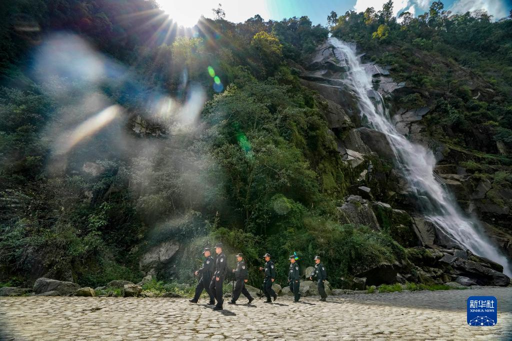 獨龍江邊境派出所民警在邊境巡查(2019年4月20日攝)。新華社記者 江文耀 攝