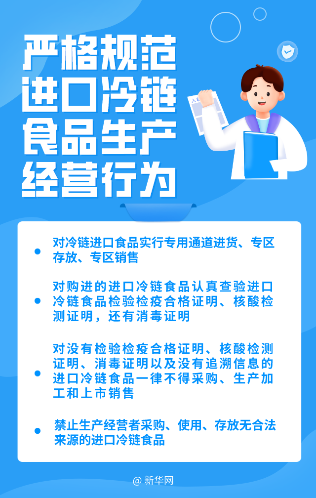 “四不”就是對沒(méi)有檢驗檢疫合格證明、核酸檢測證明、消毒證明以及沒(méi)有追溯信息的進(jìn)口冷鏈食品一律不得采購、生產(chǎn)加工和上市銷(xiāo)售。同時(shí),禁止生產(chǎn)經(jīng)營(yíng)者采購、使用、存放無(wú)合法來(lái)源的進(jìn)口冷鏈食品。