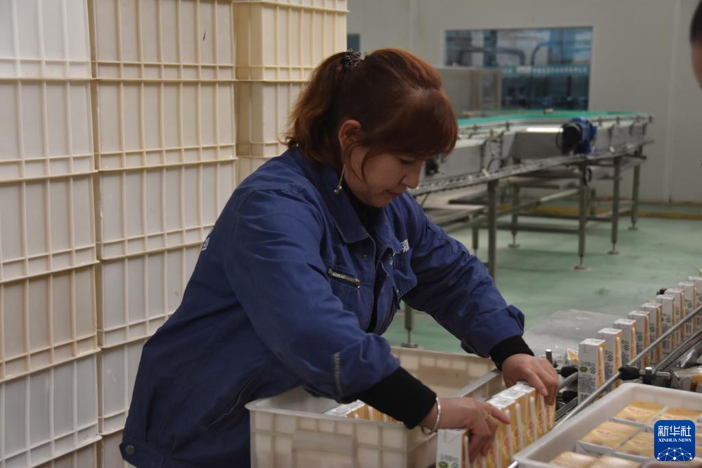 新疆葉城縣依提木孔鄉農民吐拉尼薩·阿布力米提在當地龍頭企業(yè)新疆美嘉食品飲料有限公司工作(2021年11月20日攝)。新華社記者 顧煜 攝