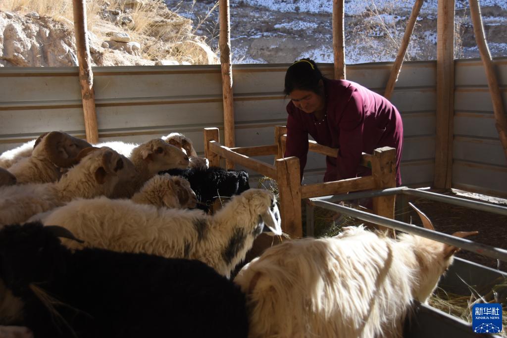 新疆和田縣朗如鄉米提孜村村民在喂羊(2021年11月16日攝)。新華社記者 顧煜 攝
