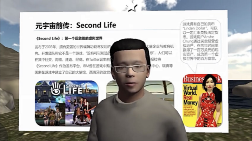 清華大學(xué)新聞與傳播學(xué)院教授沈陽(yáng)的虛擬人正在做關(guān)于元宇宙的演講。受訪(fǎng)者供圖