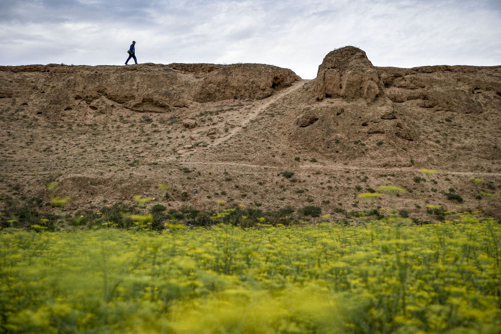 ↑2021年8月12日,李世翔在寧夏海原縣西安州古城遺址上。