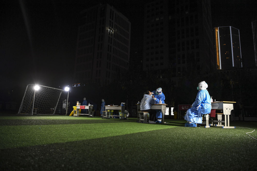 夜幕下,分散在城市街頭的采樣點(diǎn)閃著(zhù)微光,醫務(wù)人員還堅守在崗位上忙碌著(zhù)。這一處處光芒,點(diǎn)亮了抗疫寒夜。