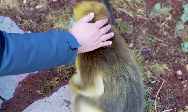 順勢摸了摸路過(guò)的幼猴