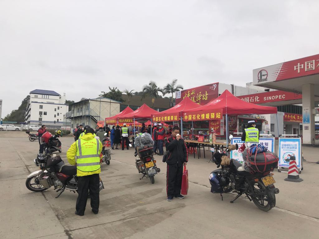 鄒丹以往每年都在位于兩廣交界處的梧州都連加油站春運服務(wù)站執勤,“如今‘摩托大軍’越來(lái)越少,我們近幾年也將工作重心轉移到高速路和梧州南高鐵站周邊路段?!?/p>