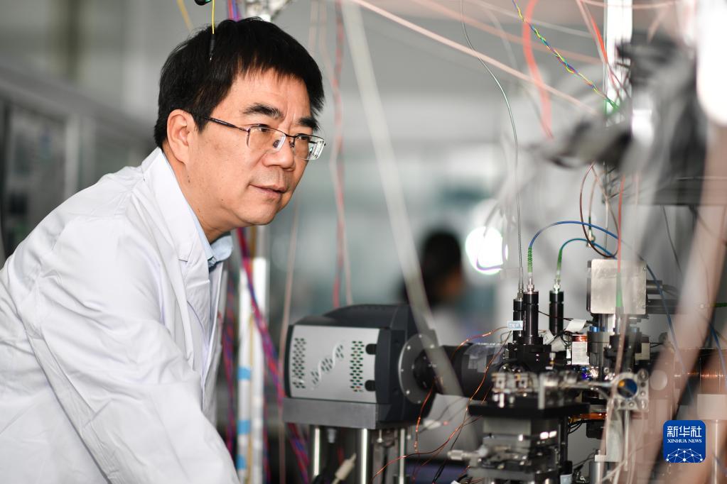 2月8日,中國科學(xué)院國家授時(shí)中心首席科學(xué)家張首剛在空間光鐘實(shí)驗室工作。新華社記者 張博文 攝