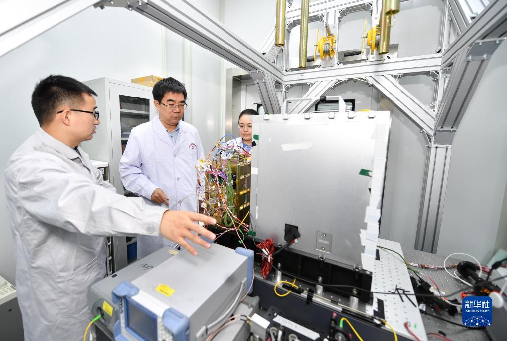 2月8日,中國科學(xué)院國家授時(shí)中心首席科學(xué)家張首剛(中)在空間窄線(xiàn)寬激光實(shí)驗室與科研團隊成員交流。新華社記者 張博文 攝