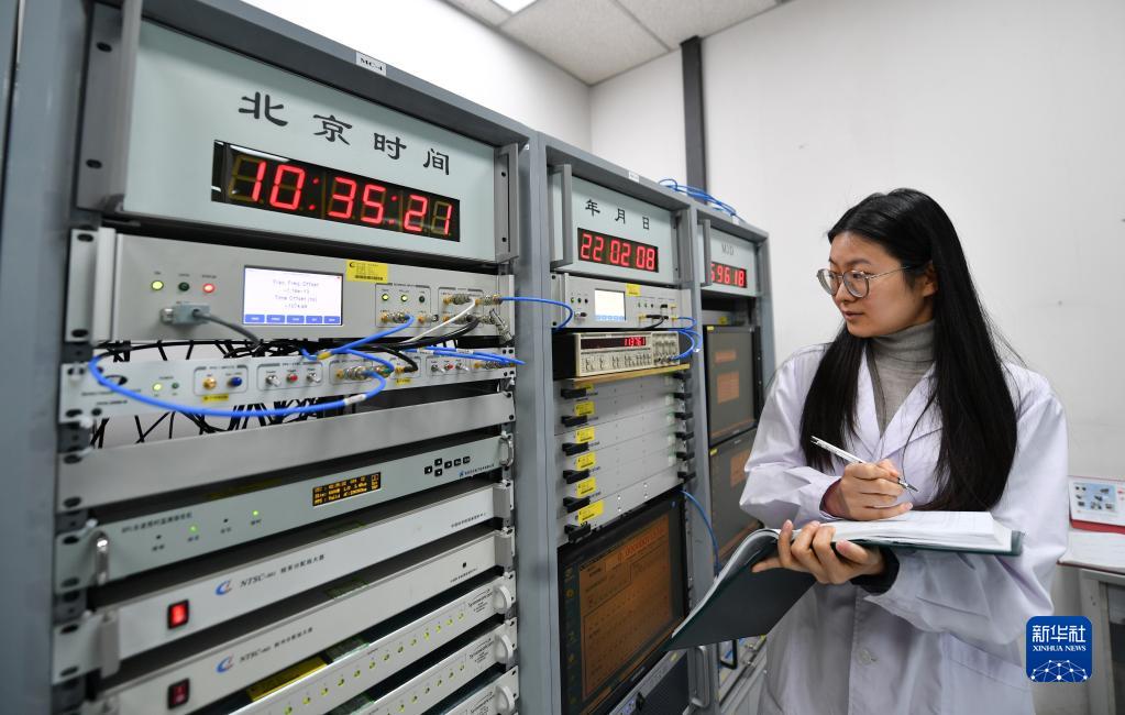 2月8日,科研人員在中國科學(xué)院國家授時(shí)中心時(shí)間頻率基準實(shí)驗室記錄數據。新華社記者 張博文 攝