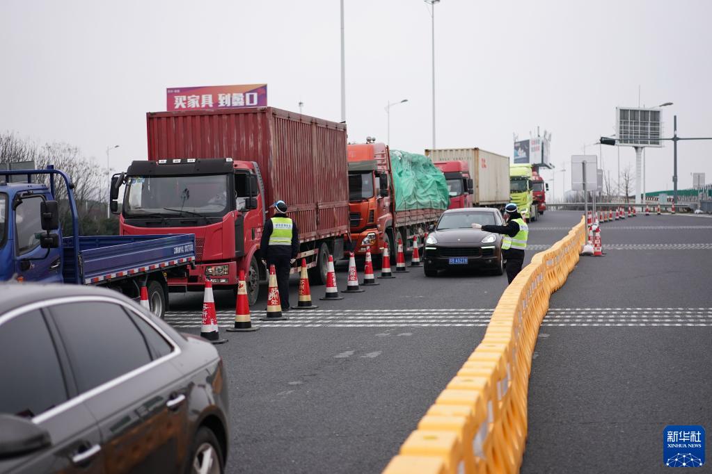 2月15日,執法人員在京滬高速公路蘇州新區收費站查驗。新華社記者 季春鵬 攝