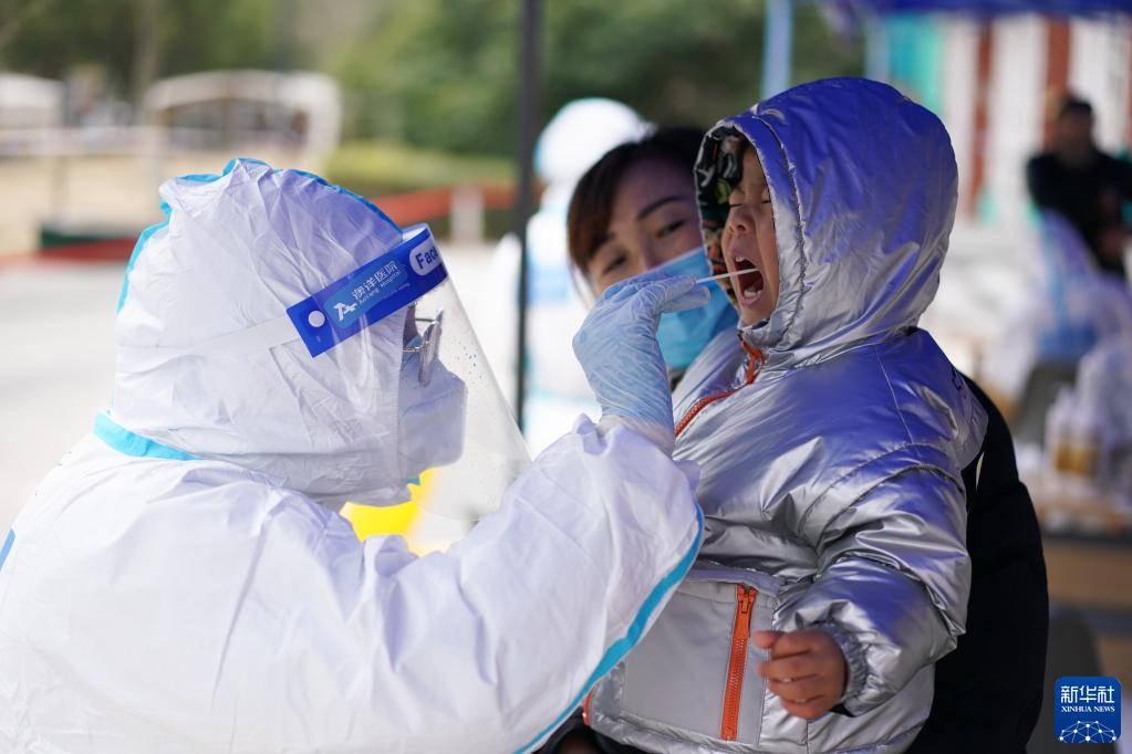 2月16日,在蘇州工業(yè)園區星灣社區群星苑小區,醫務(wù)人員在對小朋友進(jìn)行核酸采樣。新華社記者 季春鵬 攝
