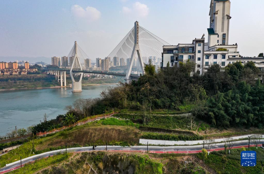 這是2月15日拍攝的位于重慶市大渡口區的重鋼崖線(xiàn)山城步道附近景色(無(wú)人機照片)。新華社記者 王全超 攝