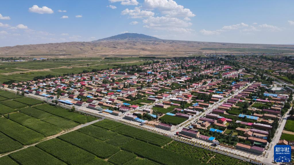 寧夏吳忠市紅寺堡區柳泉鄉永新村(2021年7月29日攝,無(wú)人機照片)。新華社記者 徐欽 攝