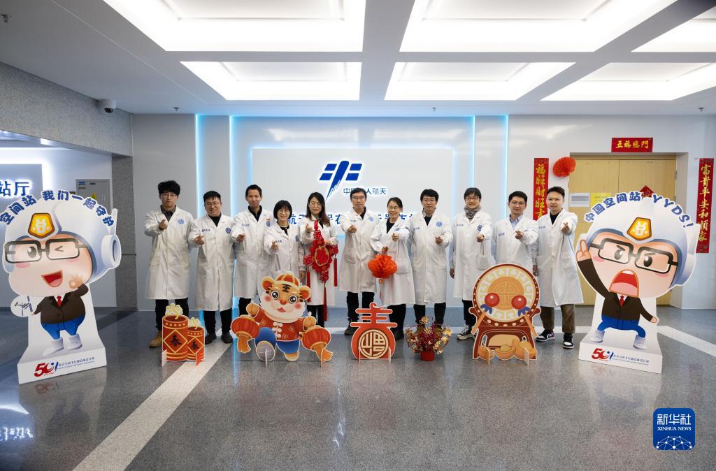 1月30日,在航天科技集團五院在軌航天器支持中心數字空間站外,空間站任務(wù)飛控試驗隊科研人員合影留念。新華社記者 金立旺 攝