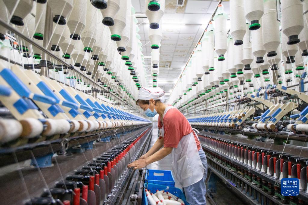 2月28日,工人在江蘇省海安市南莫鎮一家紡織公司生產(chǎn)車(chē)間內忙碌。新華社發(fā)(翟慧勇 攝)
