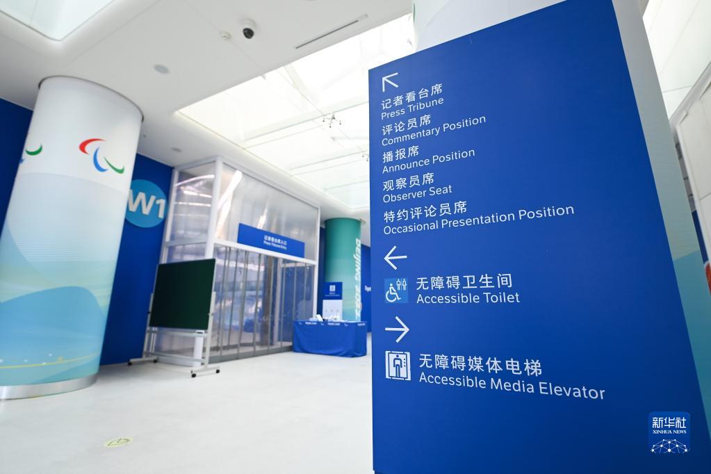這是在國家游泳中心“冰立方”內拍攝的一處指示標牌(2022年3月1日攝)。新華社記者 張博文 攝