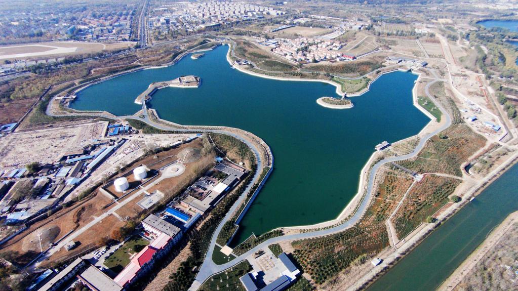 圖為2014年11月14日拍攝的團城湖調節池(左上)和團城湖明渠(右下)新華社記者 邢廣利 攝)