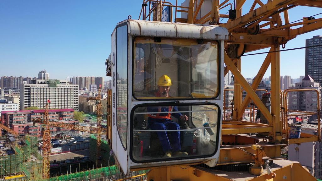 吉克達富正在觀(guān)察班組內的塔式起重機。新華社記者李紫薇 攝(2022年3月21日)