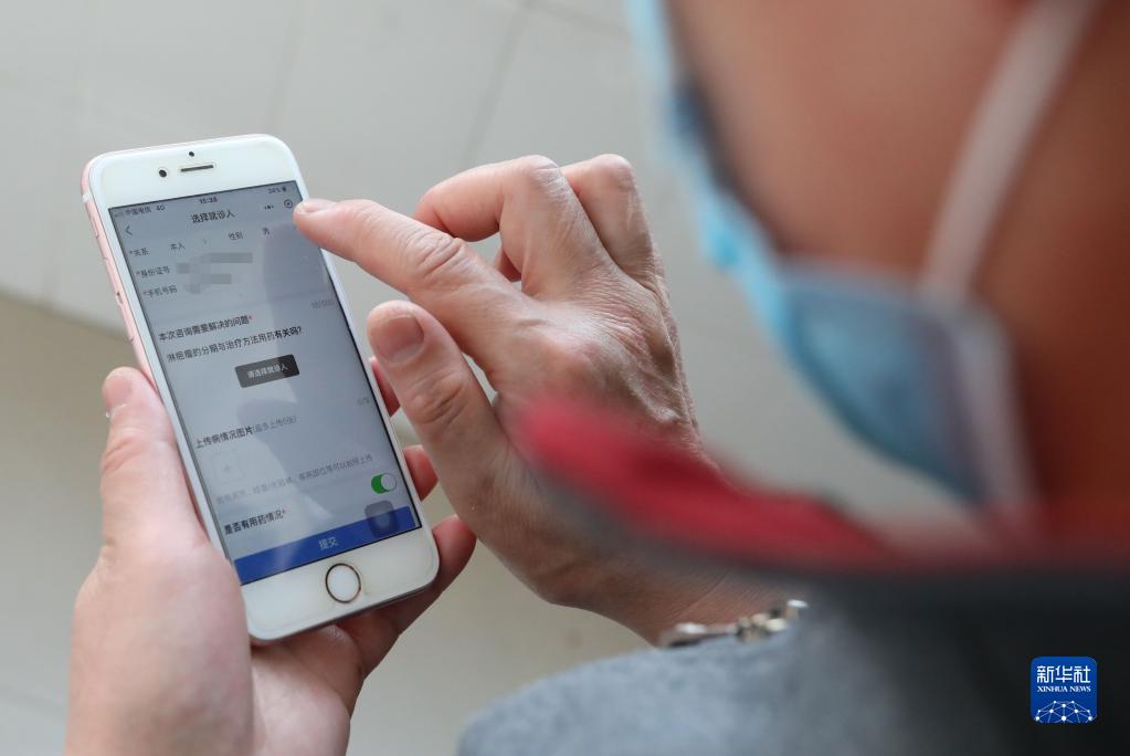 患者家屬在貴州省人民醫院通過(guò)“云診療”系統在線(xiàn)提問(wèn)(2020年4月16日攝)。新華社記者 歐東衢 攝