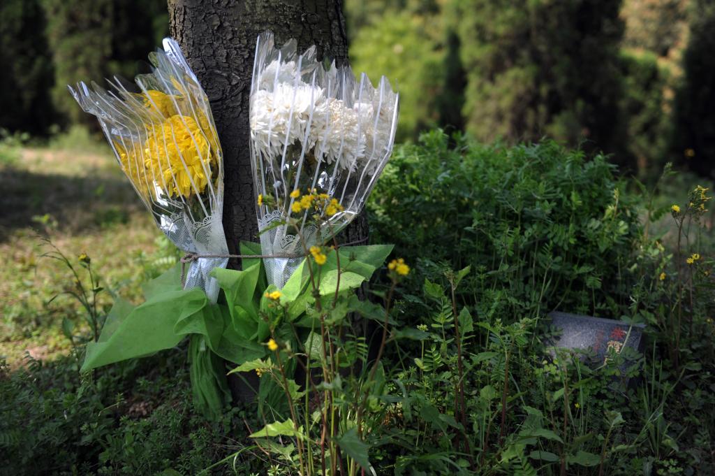 親友擺放鮮花祭奠在浙江安賢陵園樹(shù)葬的逝者。新華社記者黃宗治攝