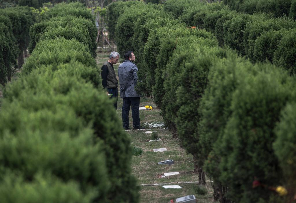 湖北武漢龍泉山孝恩園,人們在樹(shù)葬的墓穴前悼念故人。新華社記者肖藝九攝