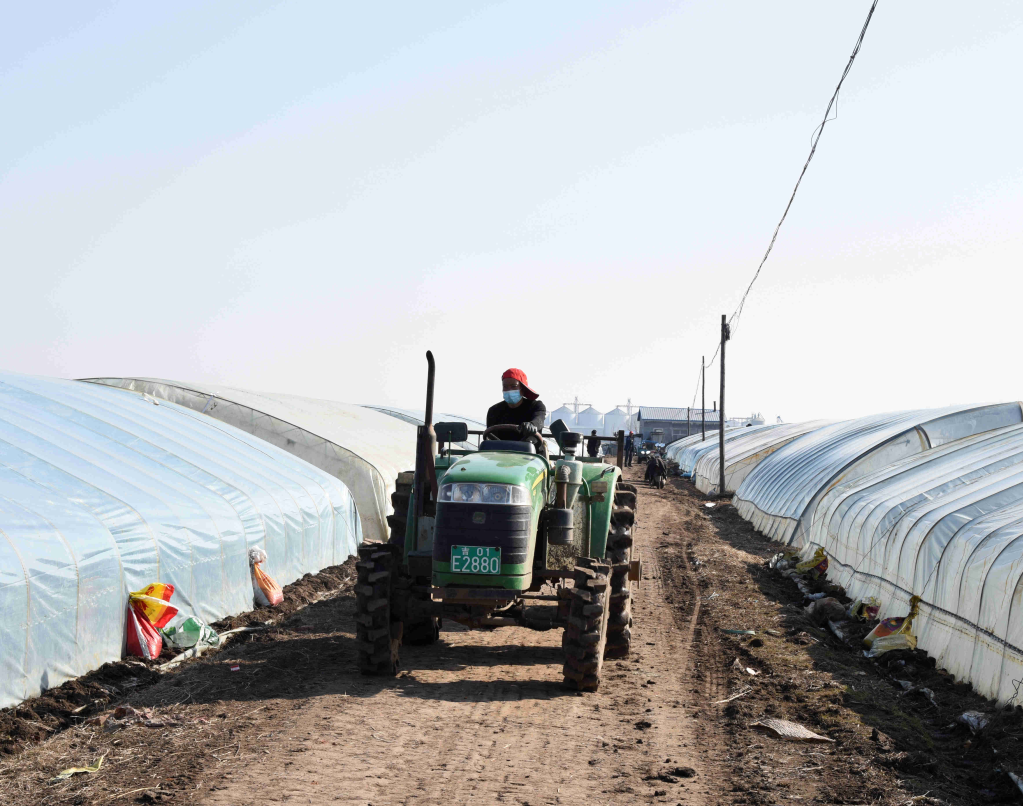 4月2日,在五常市友好村烏拉巴街屯,村民正在將土運進(jìn)大棚。新華社記者梁書(shū)斌攝