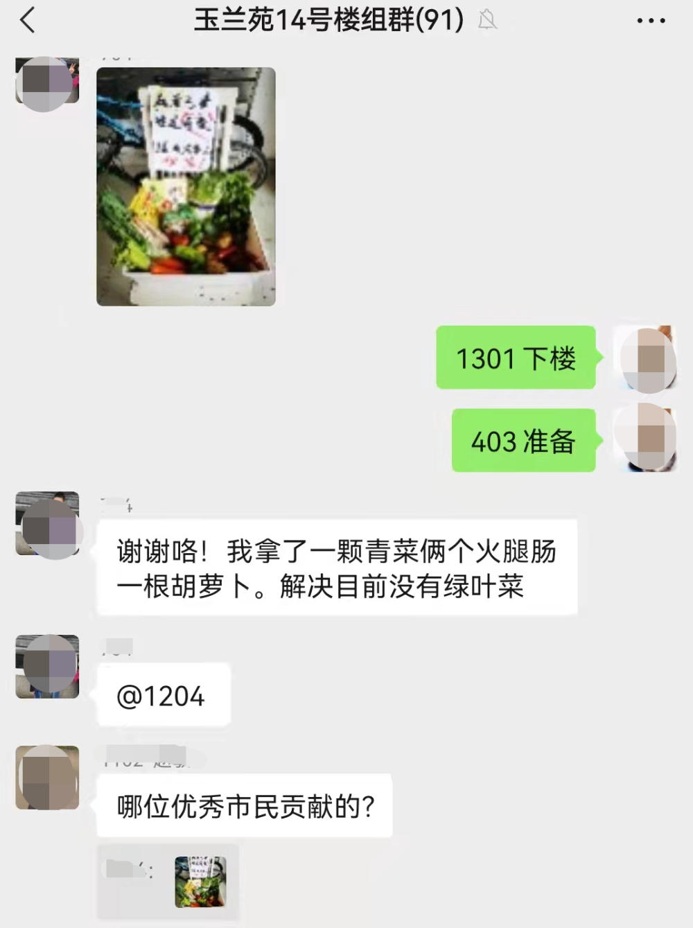 “如果是易腐爛或需放冰箱保存的食品,先在群里說(shuō)一下,若有人需要再拿出,避免浪費;每次物品增減,可以由當事人拍照分享在群里,時(shí)時(shí)掌握菜籃子情況,避免過(guò)多的人員流動(dòng)?!?/strong>