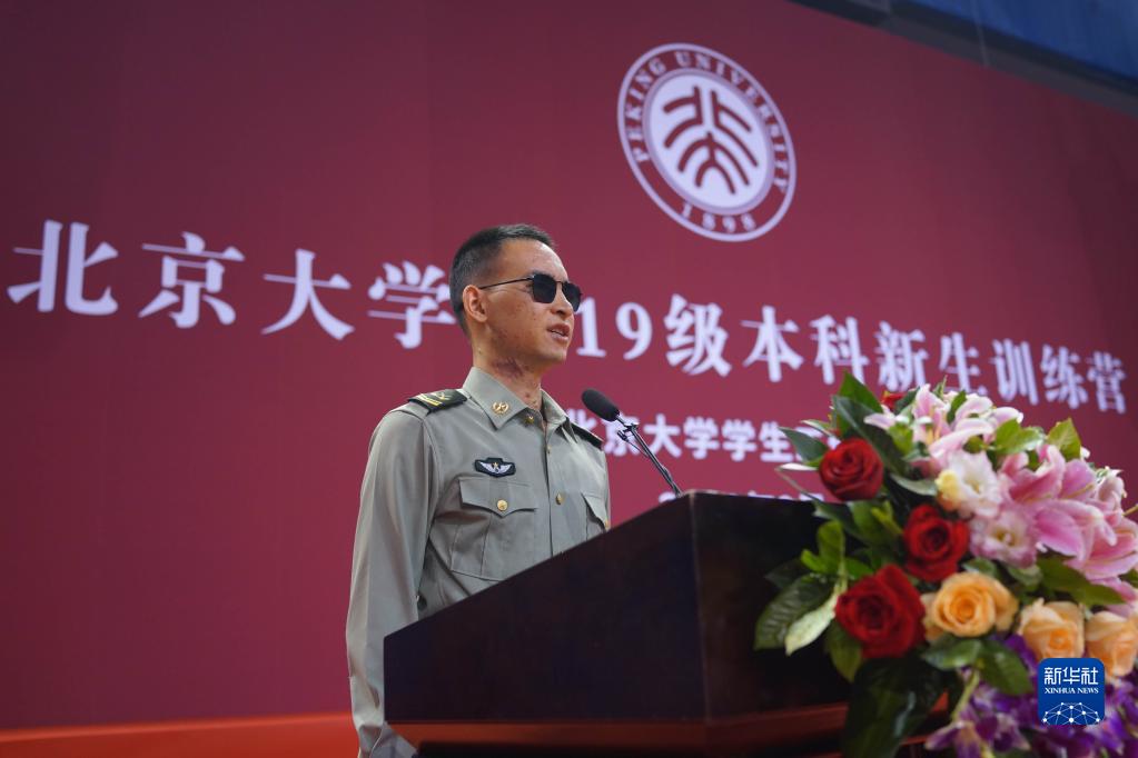 “排雷英雄戰士”杜富國在北京大學(xué)作先進(jìn)事跡報告(2019年9月3日攝)。新華社記者 李清華 攝
