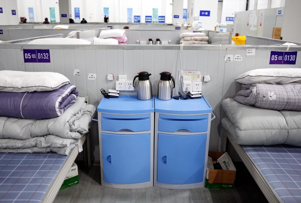 ↑4月16日拍攝的臨港方艙醫院內患者出院后空出的床位。
