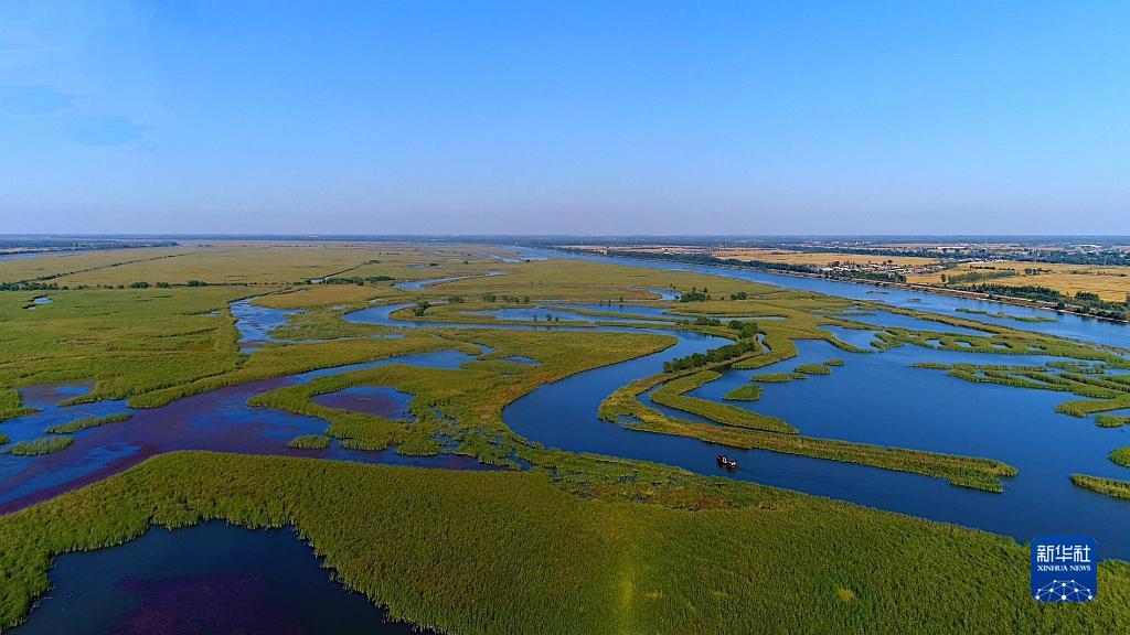 5月5日拍攝的盤(pán)錦市內一處人工濕地(無(wú)人機照片)。新華社記者 楊青 攝