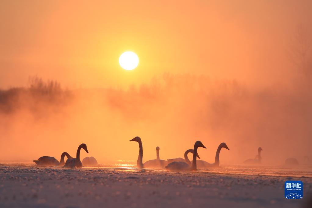 這是在遼寧省朝陽(yáng)市拍攝的越冬天鵝(1月19日攝)。新華社發(fā)