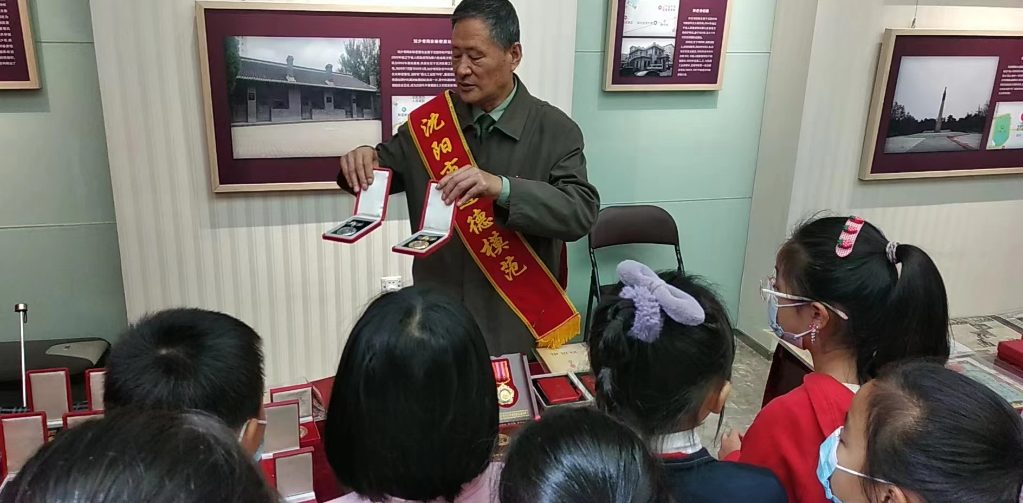 陸君祥向在校學(xué)生介紹他的藏品。受訪(fǎng)者供圖