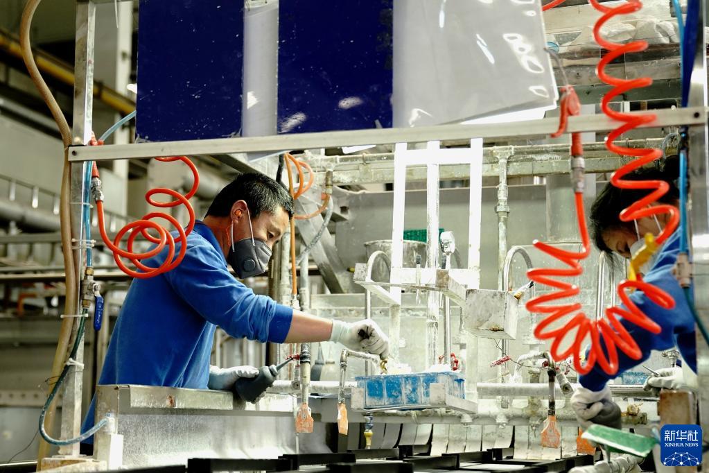 4月29日,上海加冷松芝汽車(chē)空調股份有限公司工人在生產(chǎn)車(chē)間忙碌。新華社記者 張建松 攝