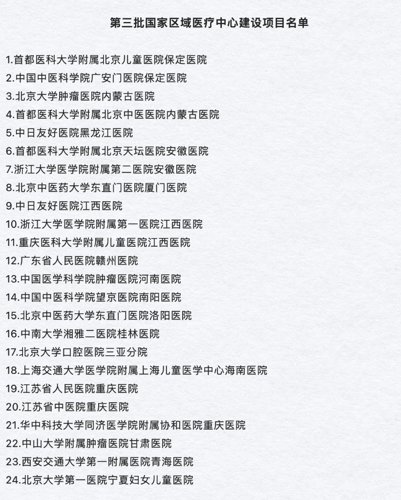 第三批國家區域醫療中心建設項目名單(圖片來(lái)源:國家發(fā)展改革委)