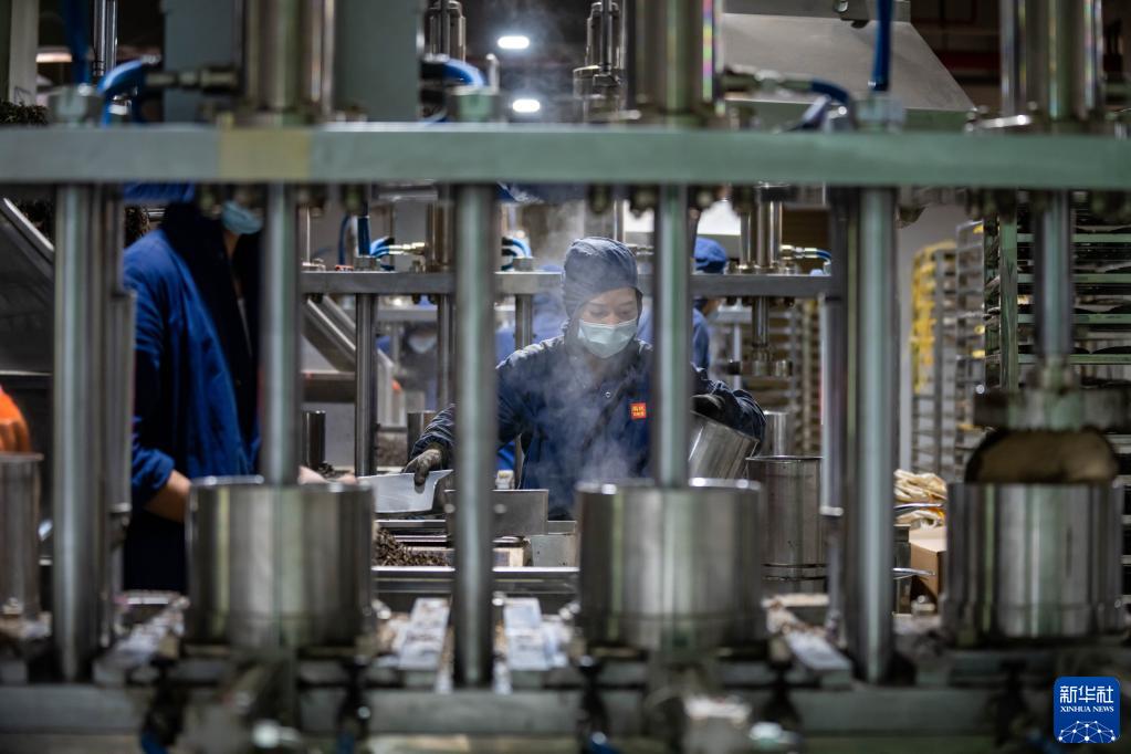 工人在西雙版納傣族自治州勐??h雨林古茶坊茶葉有限責任公司的生產(chǎn)線(xiàn)上制作普洱茶(5月10日攝)。新華社記者江文耀攝
