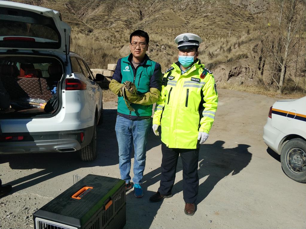 王博(左)趕往現場(chǎng)接回受傷的野生動(dòng)物。(受訪(fǎng)者供圖)